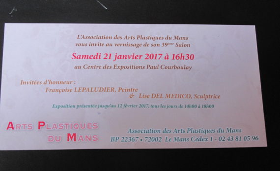Vous trouverez ci-joint une invitation pour le vernissage de l’exposition du salon des arts plastiques du Mans.. Venez nombreux.