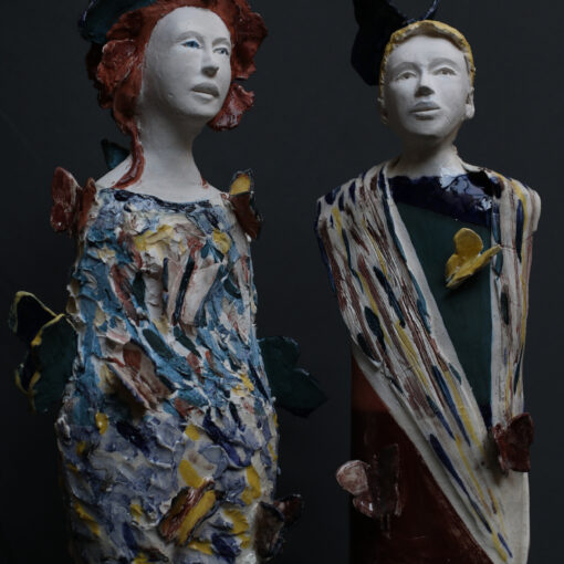 Sculptrice. Autodidacte. Depuis cinq ans j'ai le plaisir de pétrir, tordre, étirer, la terre dans tous les sens. Il en surgit des personnages principalement féminin, des visages, des bustes... mais aussi des pommes.