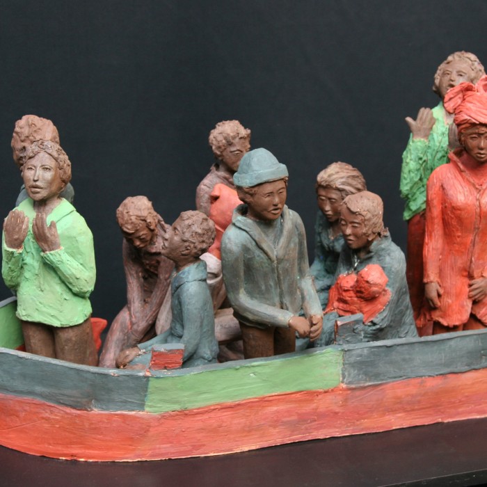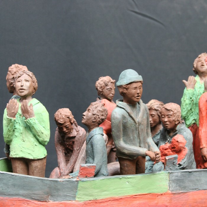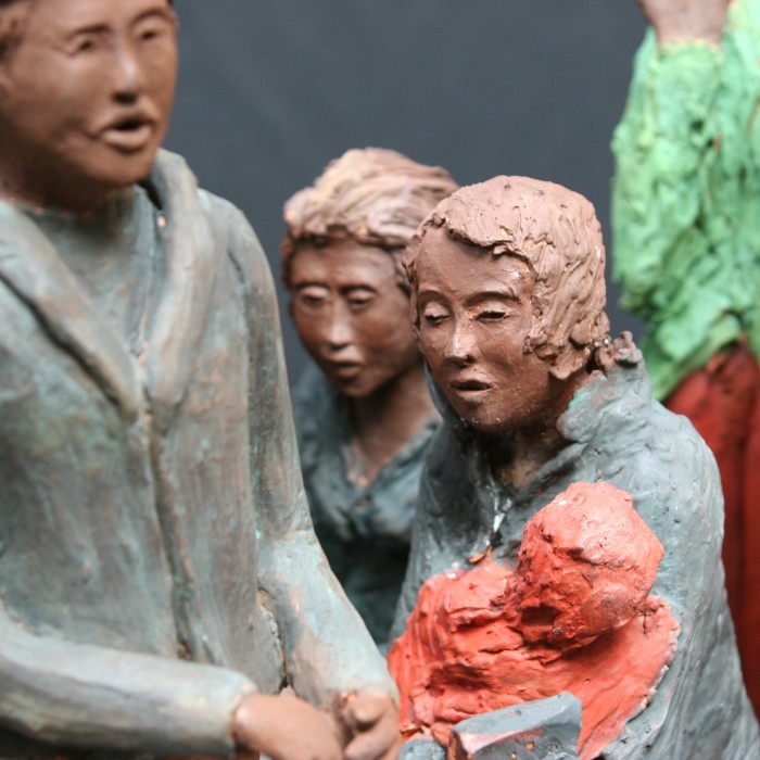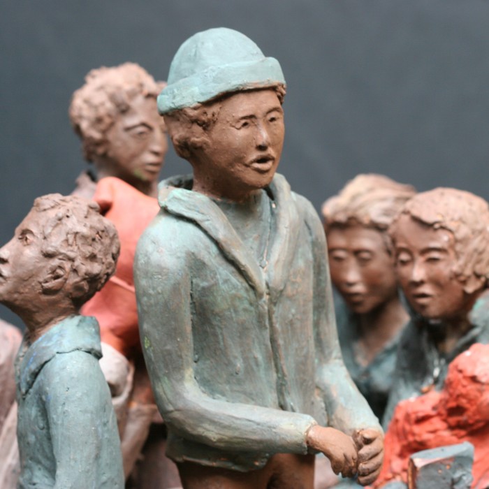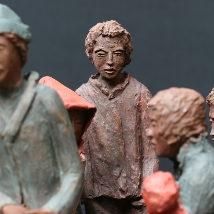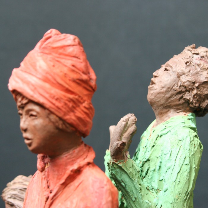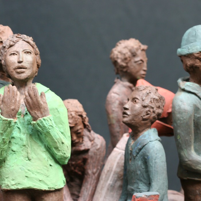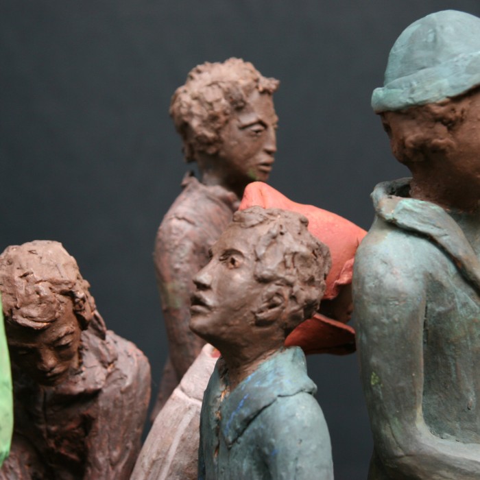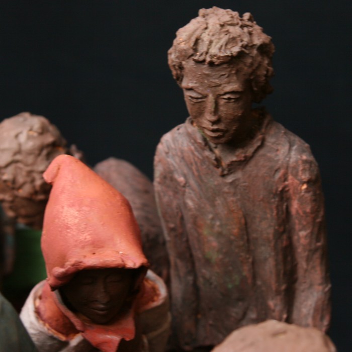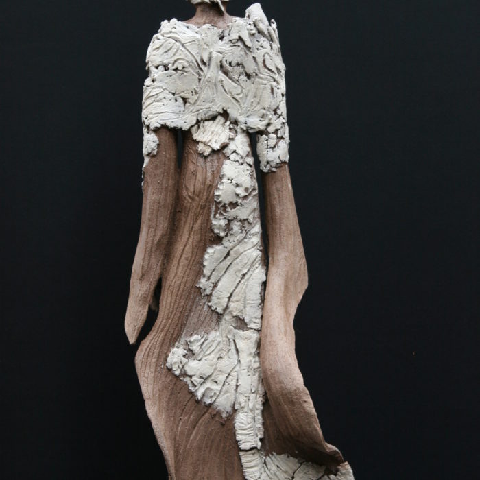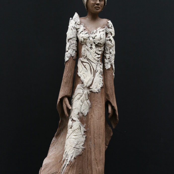 Autodidacte. Depuis cinq ans j'ai le plaisir de pétrir, tordre, étirer, la terre dans tous les sens. Il en surgit des personnages principalement féminin, des visages, des bustes... mais aussi des pommes.