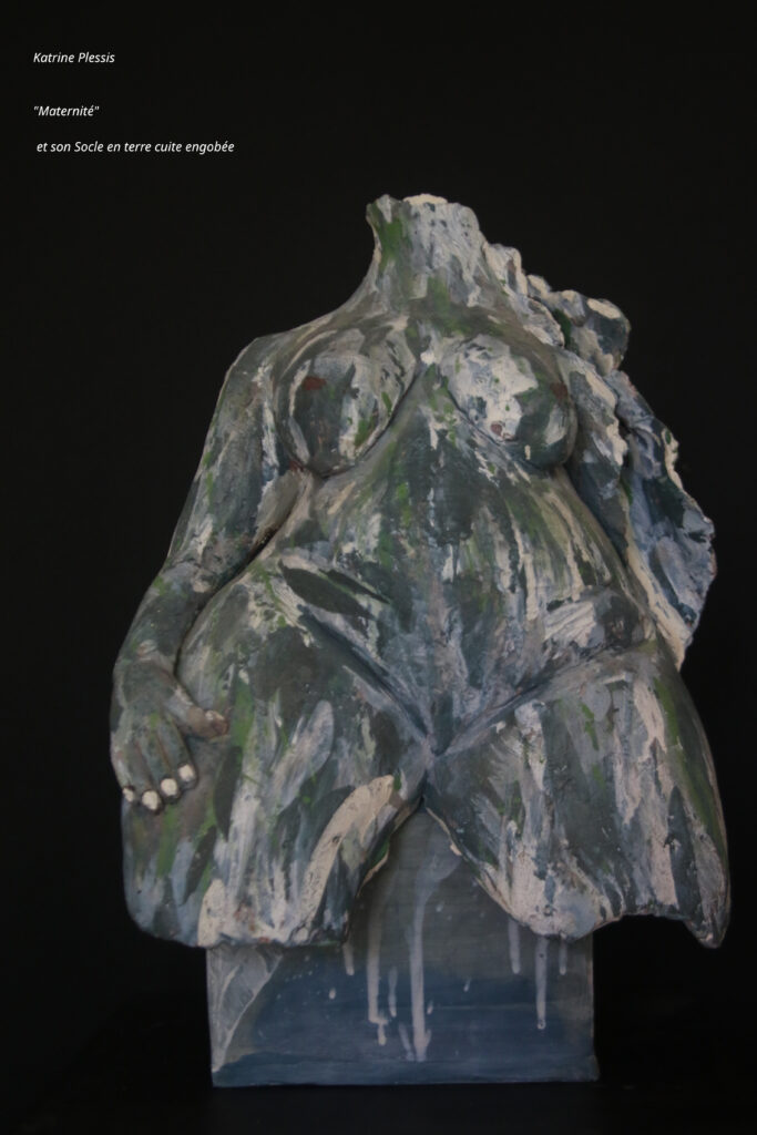 Autodidacte. Depuis cinq ans j'ai le plaisir de pétrir, tordre, étirer, la terre dans tous les sens. Il en surgit des personnages principalement féminin, des visages, des bustes... mais aussi des pommes.