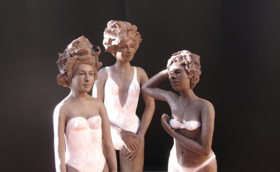 Réalisation en terre cuite (grès) avec engobe blanc avant la cuisson au four céramique à 1000 degré. Hauteur de 30cm à 40cm.2016 Non disponible